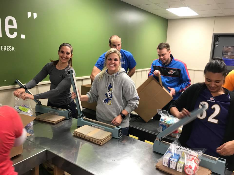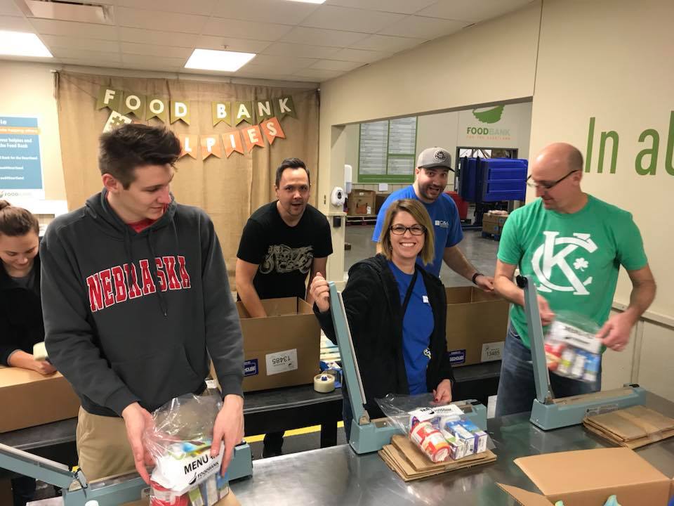 We volunteered with the "backpack for kids" program at the Food Bank for the Heartland, and in two hours we were able to pack more than 4,400 "backpacks" which equates to more than 17,000 meals for area children who may not have access to other food sources over the weekends or during times of school break.